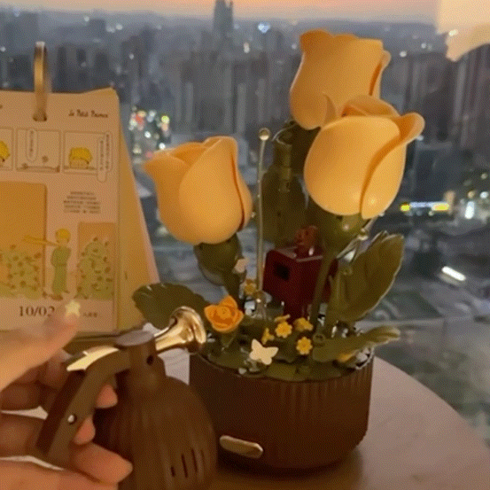 The flowers automatically open and bloom through an ingenious design that mimics natural movement, triggered by the magic sprayer.